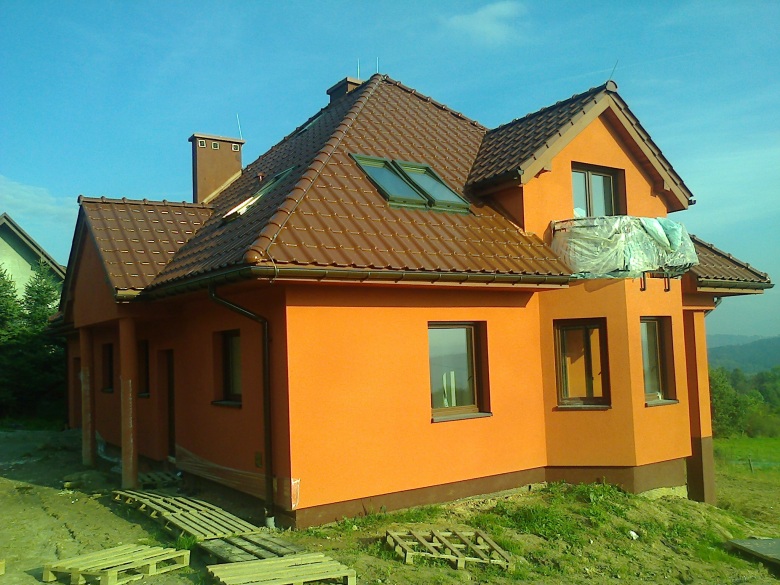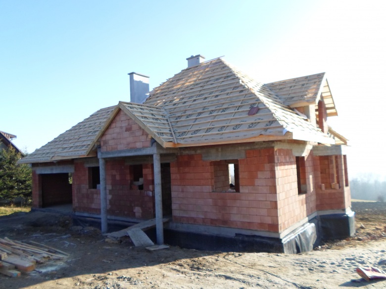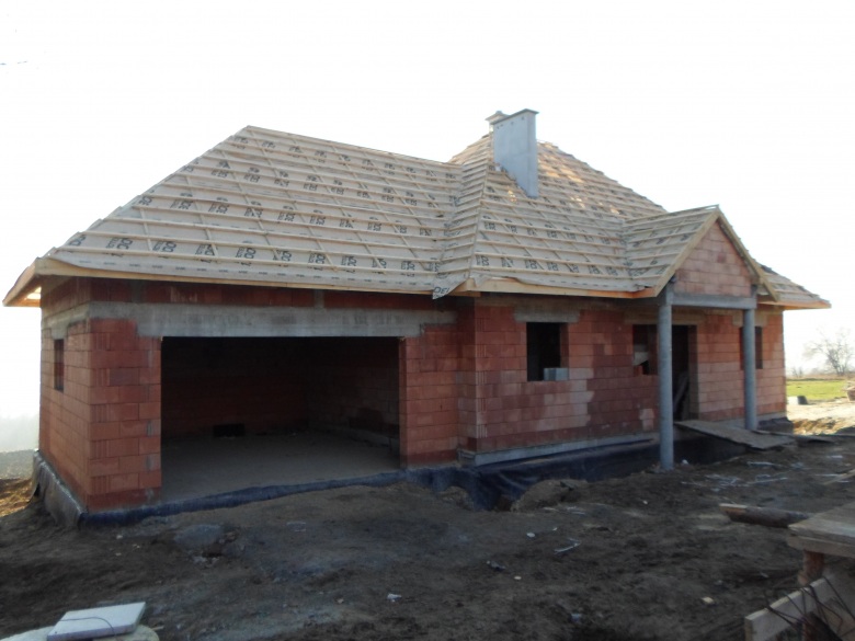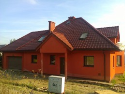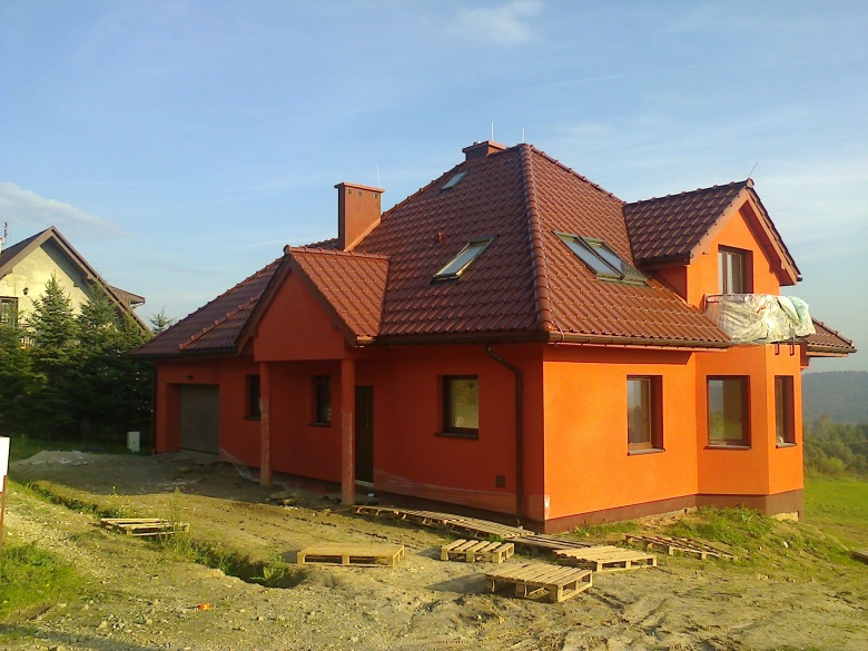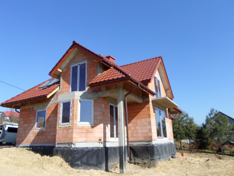 Budynek wykonany z ceramiki Porotherm 25 , pokrycie dachówka ceramiczna Koramic Alegra 9.