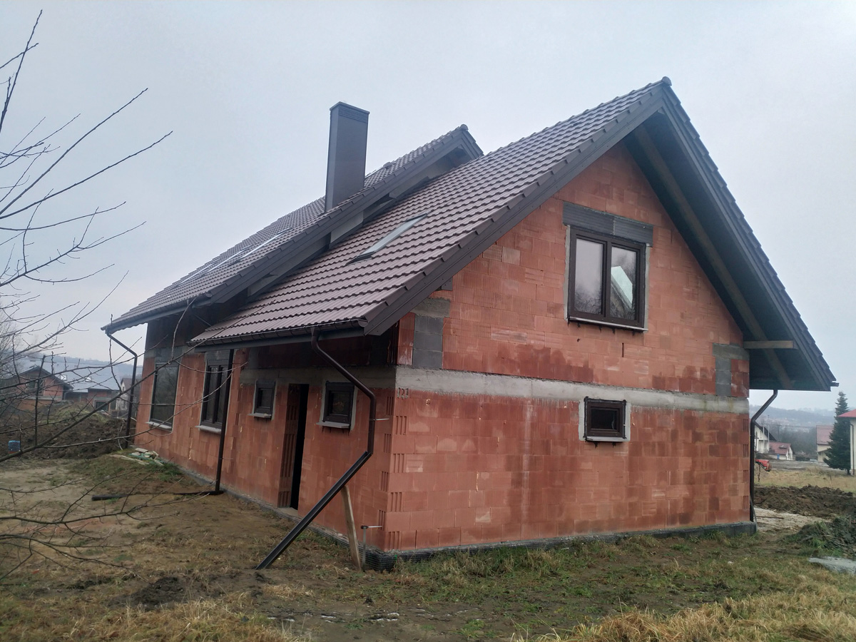 Budynek wykonany z ceramiki Porotherm Dryfix, pokrycie dachowe dachówka ceramiczna Braas model Topaz 13V